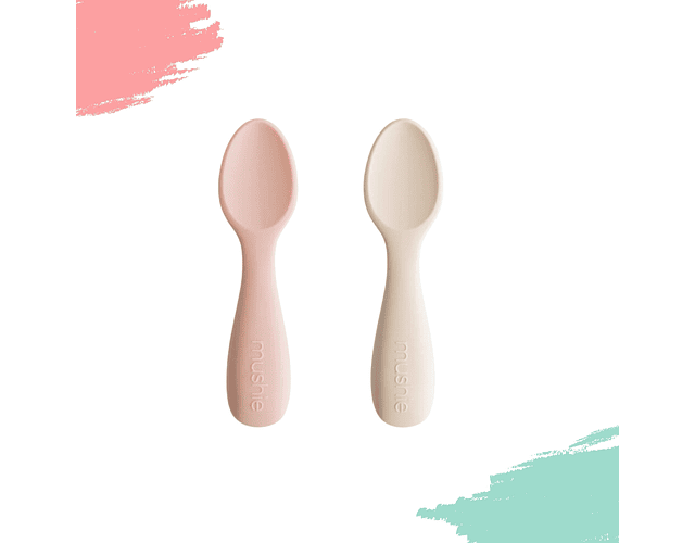 Detalles de las cucharas de alimentación de silicona Mushie
